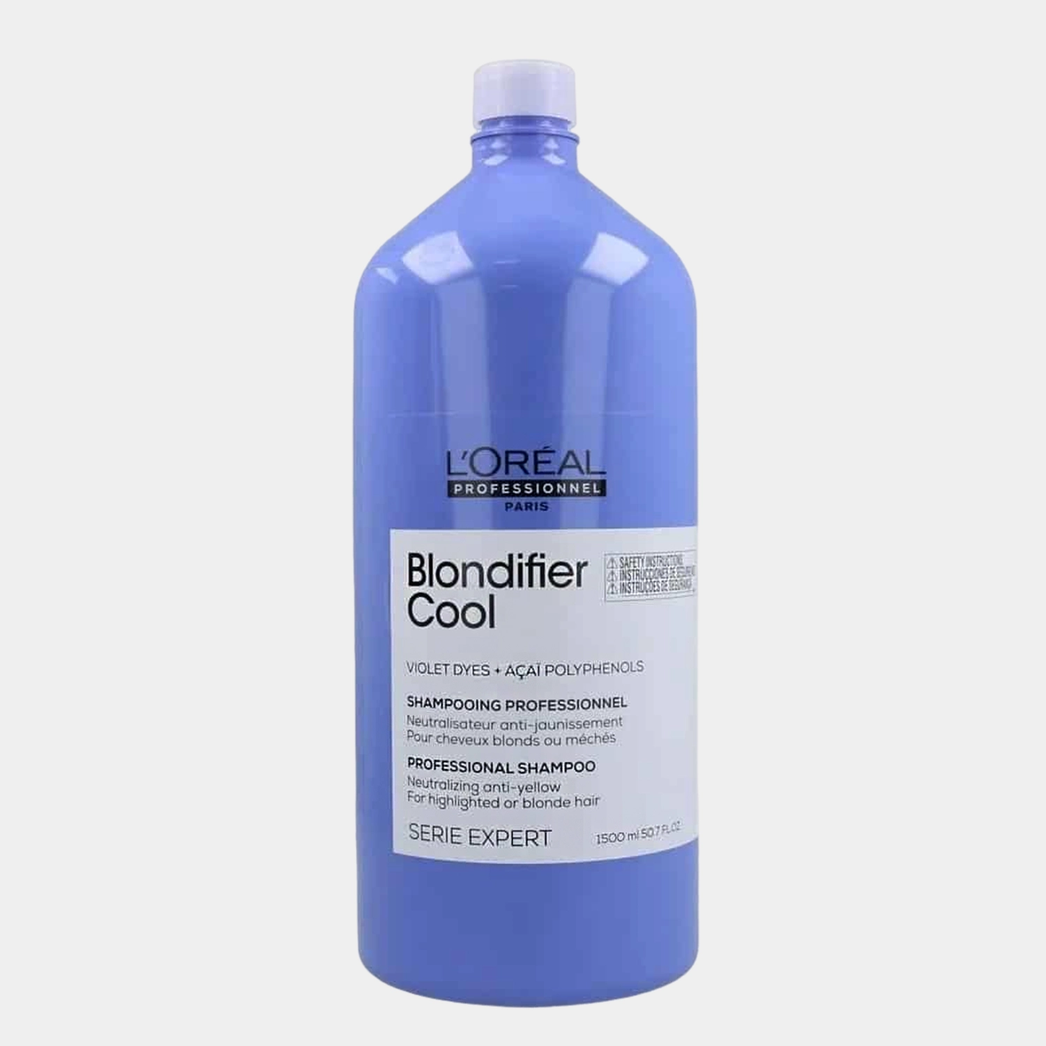 Enriquecido con extracto de Açai que contiene polifenoles y pigmentos violetas. La fórmula profesional limpia cuidadosamente la fibra capilar para un efecto rubio frío.